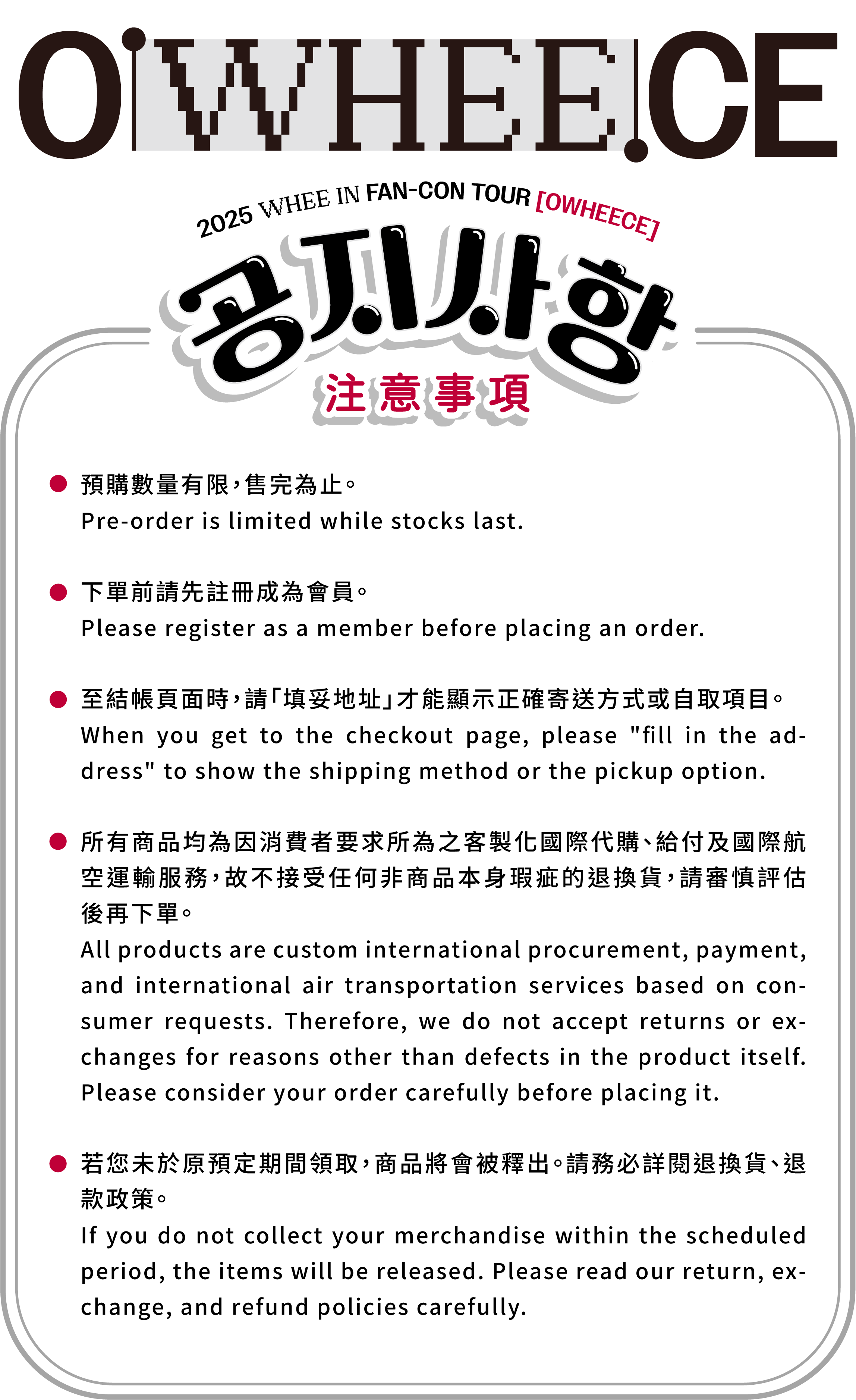 ⊛ 「演唱會現場領取」可選擇臺北場或高雄場現場領取,下單前請務必確認領取方式是否正確。